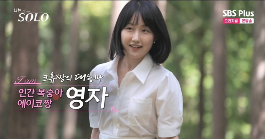 인간 복숭아로 소개된 영자는 귀여운 외모와 함께 데프콘님께서 임수정느낌이 있다고 할 정도로 단아한 이미지를 가진 분입니다. 마지막 연애가 2~3년 전이며 주변에 연애할 기회가 많이 없어서 출연했다고 합니다. 연예인으로 이상형을 꼽는다면 김무열님과 이서진님을 꼽았으며 어른스러운 면을 가진 이성에게 매력을 느낀다고 합니다. 참고로 영자의 아버지께서 굉장히 미남형입니다.